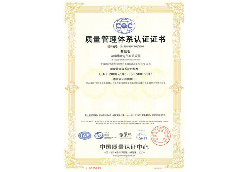 質量管理體系認證證書